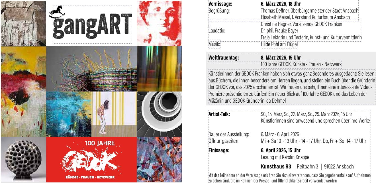 100 Jahre Künstlerinnen Gemeinschaft GEDOK - Ausstellung gangART- 6.3. - 6.4.2026