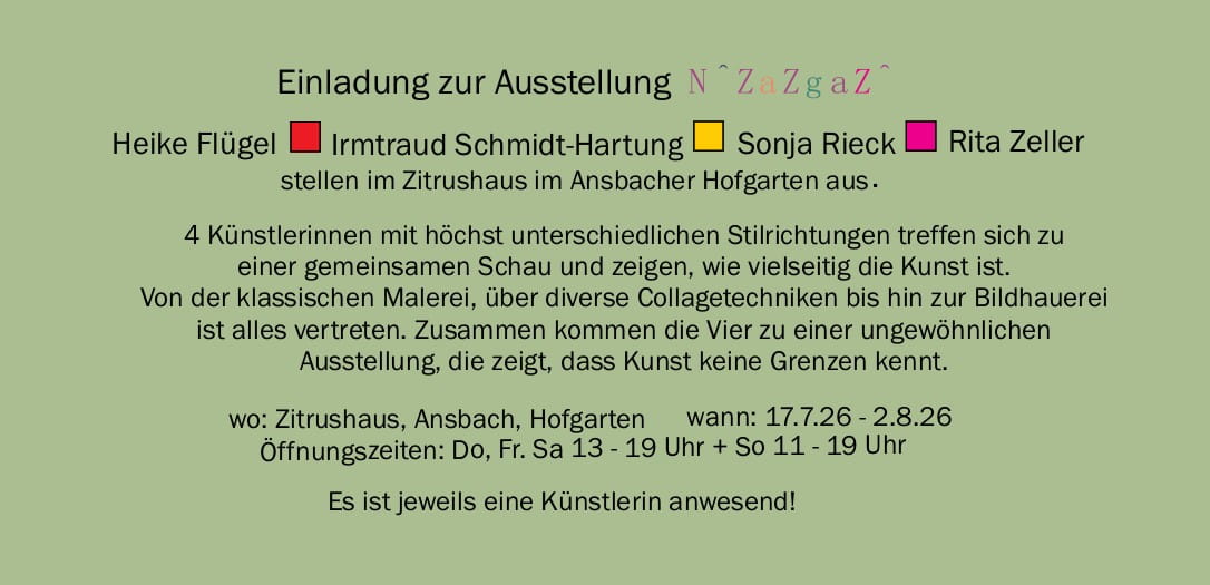 Ausstellung "Viererlei" Zitrushaus, Hofgarten in Ansbach 17.07. - 2.8.2026
